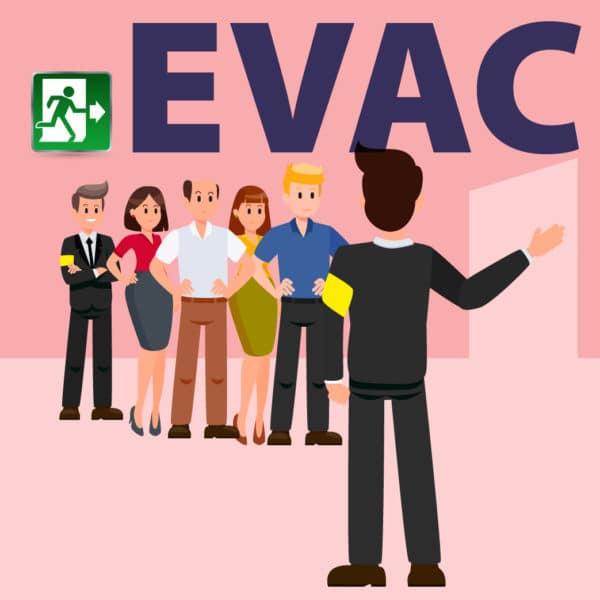 Connaissance des consignes et des circuits d’évacuation. Savoir maîtriser un début de panique des occupants des locaux et déterminer les rôles de chacun (guide-file, serre-file et responsable de secteur). Pour l’employeur, répondre à différentes obligations du code du travail : Articles R4227-39 (imposant un exercice d’évacuation tous les 6 mois) et R4227-40 du décret n°2008-244 du 7 mars 2008-art (V).